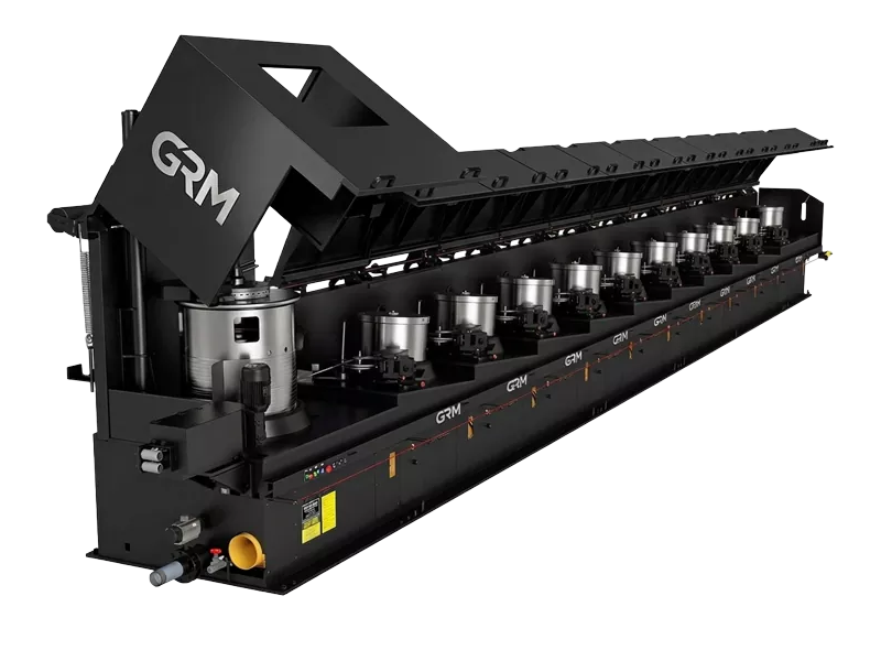 जीआरएम रोलिंग मिल द्वारा पेश की गई जीआरएम श्रृंखला की गुणवत्ता वाली उच्च गति वाली सटीक तार खींचने की मशीन एक अत्यधिक कुशल प्रसंस्करण प्रणाली है जो विशेष रूप से उच्च, मध्यम और निम्न-कार्बन स्टील तार, स्टेनलेस स्टील तार, तांबे के तार और आकार के मिश्र धातु के तार के लिए डिज़ाइन की गई है। "पतले तार" के लिए एक साधारण उपकरण से कहीं अधिक, यह तार सामग्री के यांत्रिक गुणों को संरक्षित करते हुए असाधारण उच्च सतह फिनिश प्राप्त करने के लिए एक सटीक सर्वो ड्राइव सिस्टम और बंद-लूप तनाव नियंत्रण का उपयोग करता है।