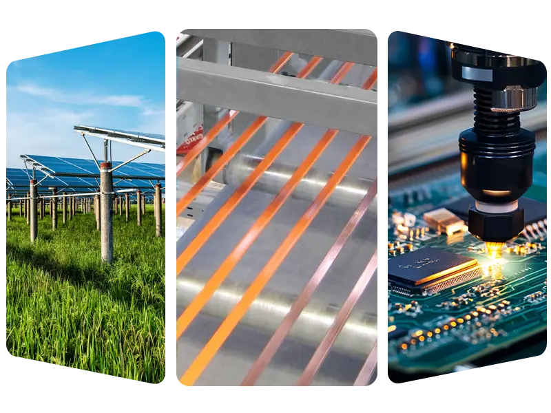 • फोटोवोल्टिक क्षेत्र: घटकों को कुशलतापूर्वक बिजली संचालित करने में मदद करने के लिए फोटोवोल्टिक वेल्डिंग रिबन और बसबार का बड़े पैमाने पर उत्पादन।